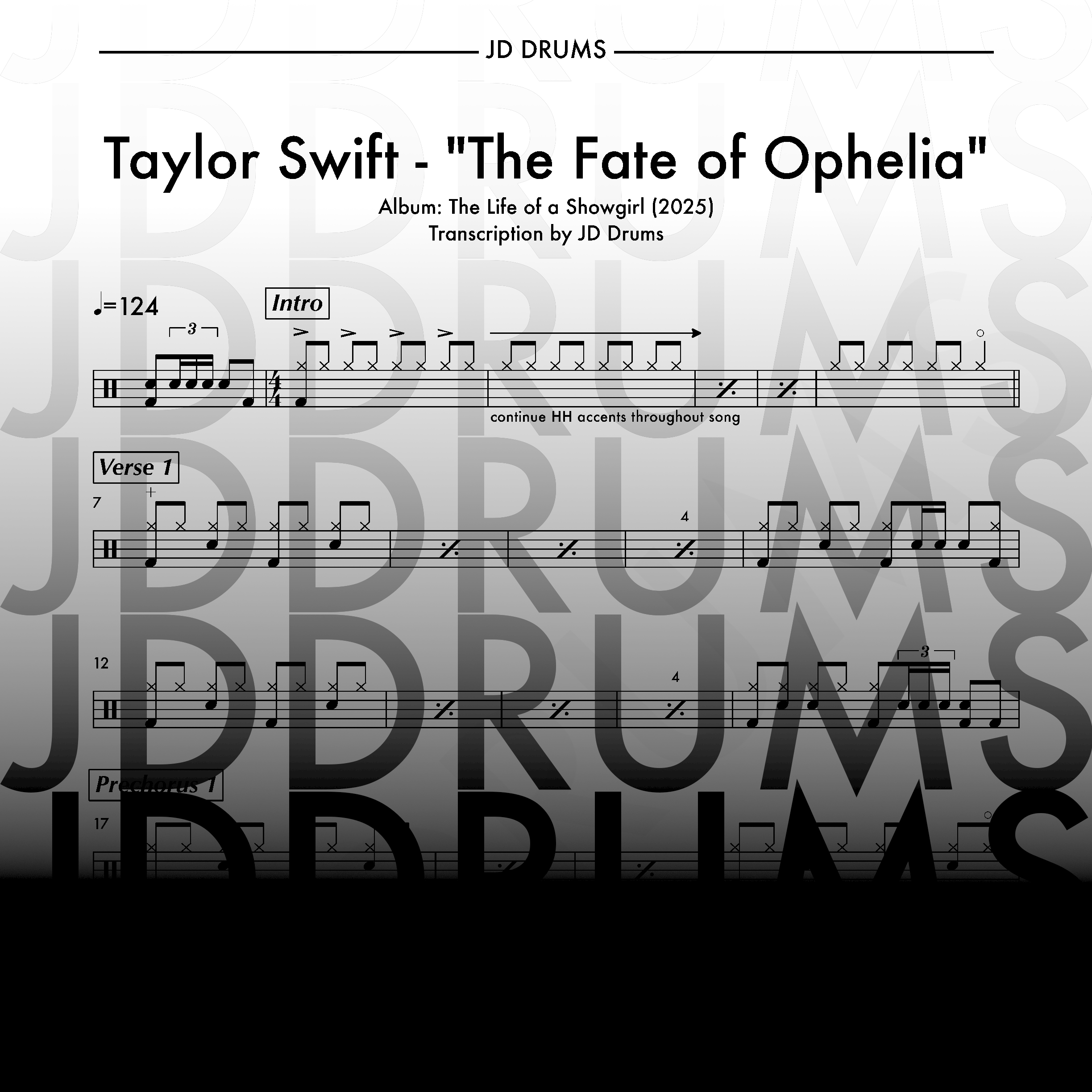 Check out the free drum sheets over in the shop page - currently, “Opalite” by Taylor Swift is free for download!